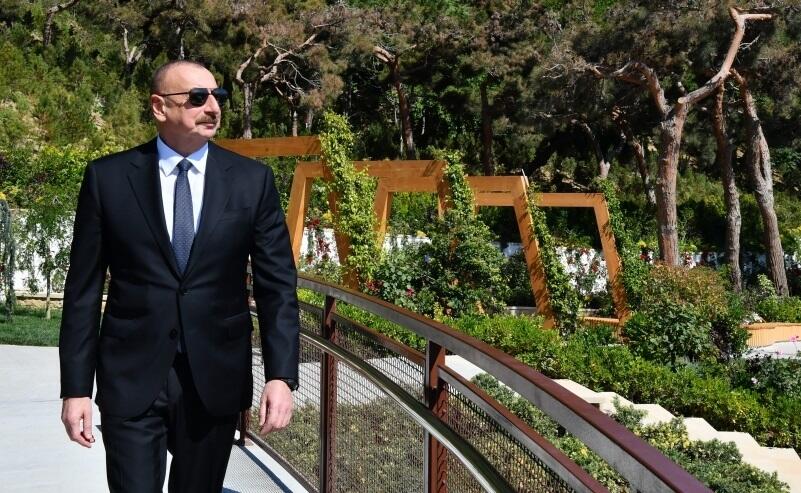Президент Азербайджана Ильхам Алиев ознакомился с условиями, созданными в новом парке "Чемберекенд" в Сабаильском районе Баку.