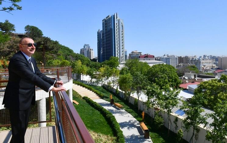 Президент Ильхам Алиев полюбовался из нового парка панорамой столицы.