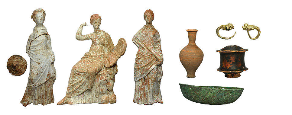 Среди представленных публике артефактов — золотой венок из захоронения конца 4-го – начала 3-го века до нашей эры, многочисленные украшения, глиняные скульптурки, сосуды эллинистического периода.